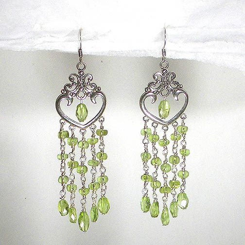 Peridot Rondelles & Faceted Peridot Ovals hand wired with Sterling Silver Wire onto Sterling Silver Heart Chandelier French Wires.